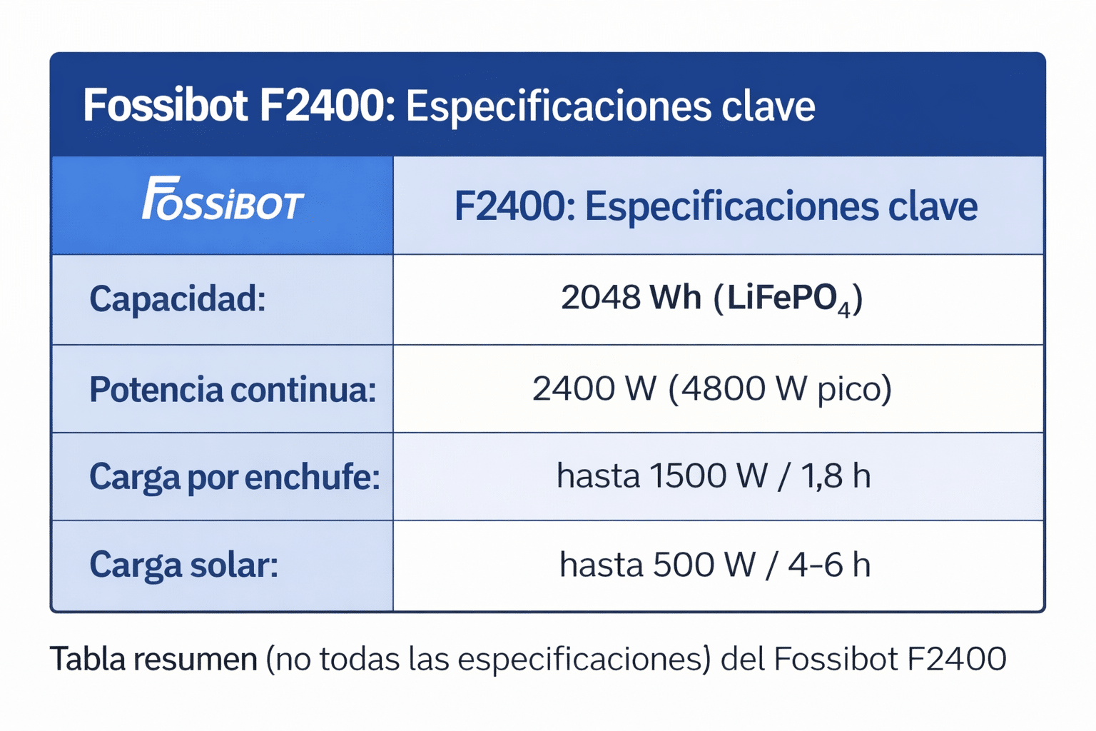 Si has marcado ✔ en potencia, UPS y carga solar, el Fossibot F2400 encaja muy bien contigo.